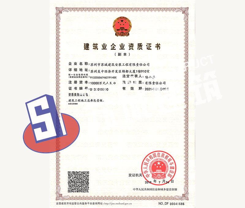 蘇州市蘇城建筑安裝工程有限責任公司,擁有主項建筑工程施工總承包一級資質,增項市政公用工程施工總承包二級資質和建筑裝修